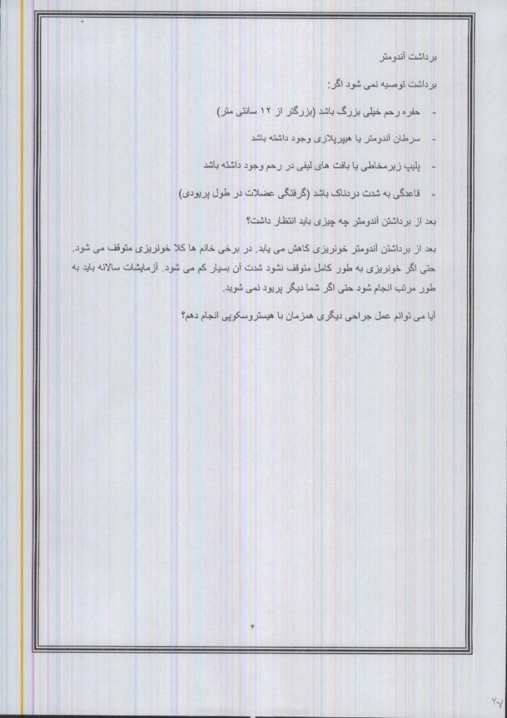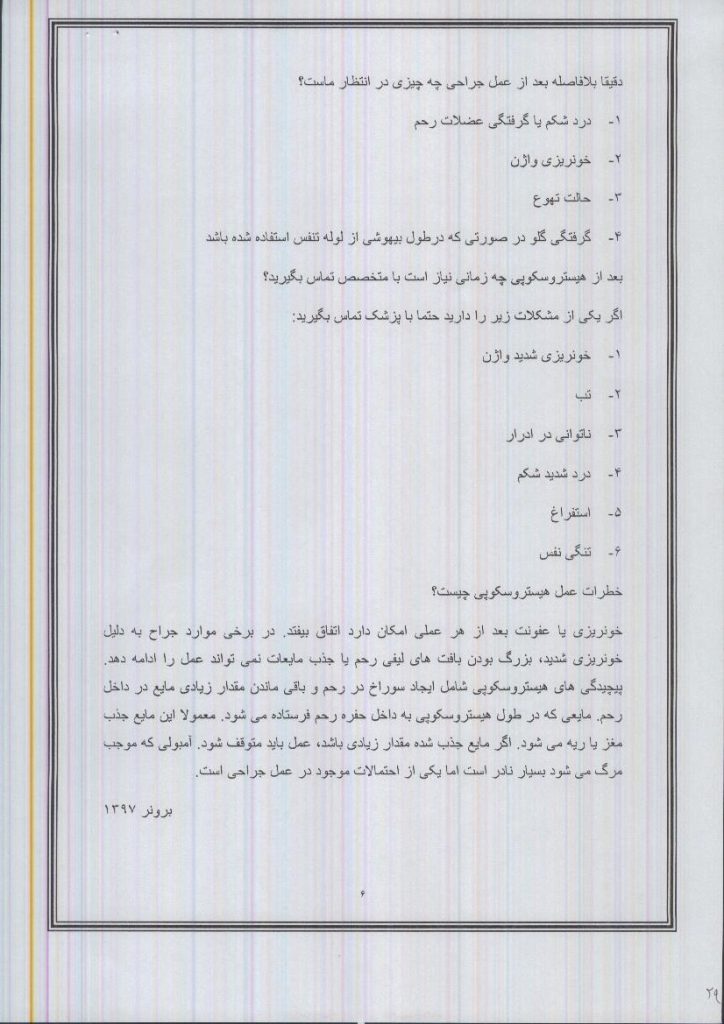فرم آموزش به بیمار در زمان ترخیص – کورتاژ –